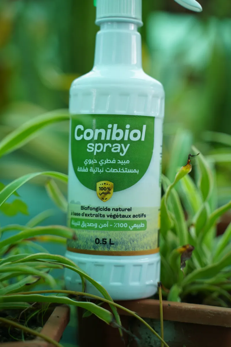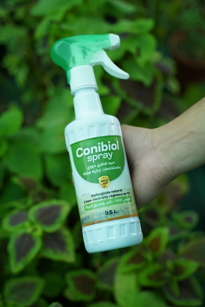 Conibiol Spray مبيد فطري طبيعي يعتمد على مستخلصات نباتية فعّالة لحماية نباتاتك من الأمراض الفطرية دون الإضرار بالبيئة. يمنح النبات مناعة قوية ويساعده على النمو الصحي، ومناسب للاستخدام داخل المنزل أو خارجه.